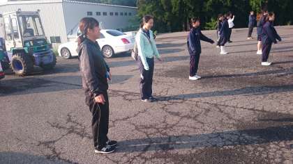 先生方も気合いを入れて、体操をしています