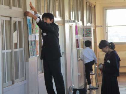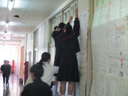 授業だけではなく、廊下に掲示している進路ポスターや校外学習の写真などもご覧いただいています。