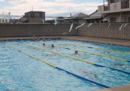 今日はあいにく風があって少し肌寒いようですが、それでも先生の指示を聞いて、元気に泳いでいます。