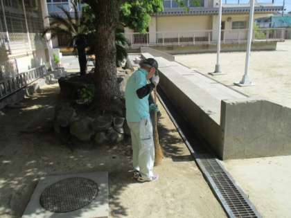 学校整備員さんは朝早くから掃除をしていただいています。感謝です。