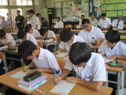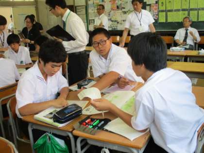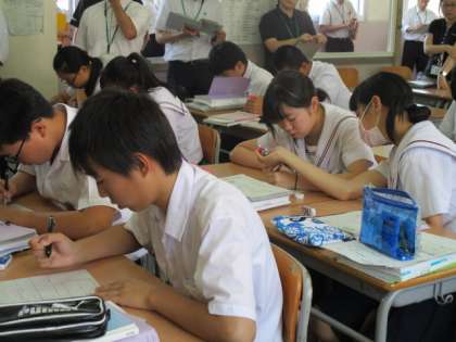分割授業です。府立緑風冠高校、野崎高校の先生方が来ていただきました。