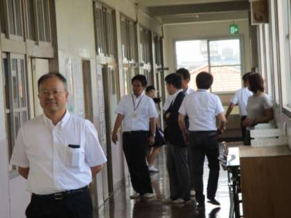 本日、大東市議会議員の品川大介議員、水落康一郎議員をはじめ数名の方が配膳の様子、試食、生徒たちが給食を食べている様子などを見に来られました。