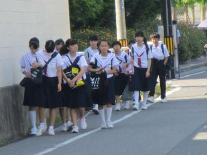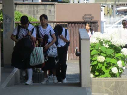 朝から蒸し暑いですが、生徒は元気よく登校してきました。