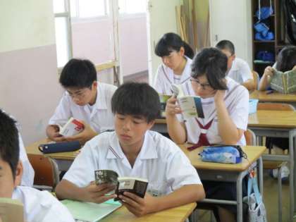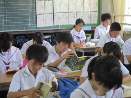 2年1,2組の朝読風景です。
