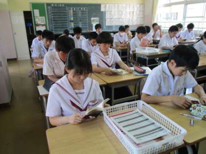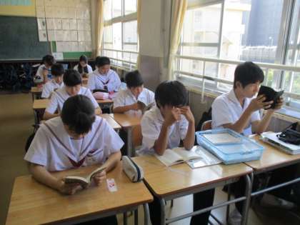 2年3,4組の朝読風景です。