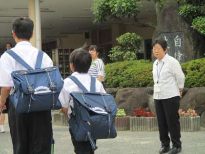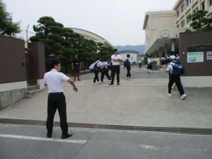 今日もいい天気です。明日は3年生チャレンジテストです。今日は大東中学校学校サポーターの中易先生に来ていただいています。