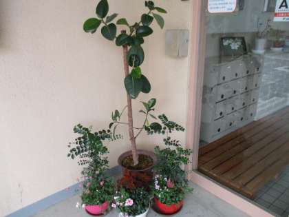 おしゃれな職員玄関です。校務員さんの工夫です。