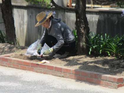 校務員さんにお願いして向日葵の種を蒔いてもらいました。夏が楽しみです。