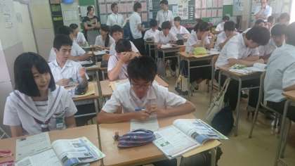 3年社会の浅松先生が3年3組で授業公開をしました。大東市学力向上アドバイザーの西岡先生と大東市教育研究所から指導主事の方が来ていただきました。