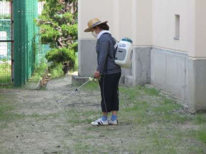 校務員さんの作業姿です。暑い中の作業、頭が下がります。
