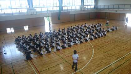 2年生が体育館で学年集会を行っています。