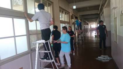 理科室の窓ふきです