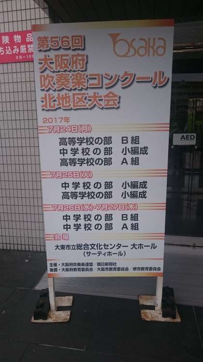 今日、大東市立総合文化センターでコンクールが行われました。先週は朝、7時から練習するなど、