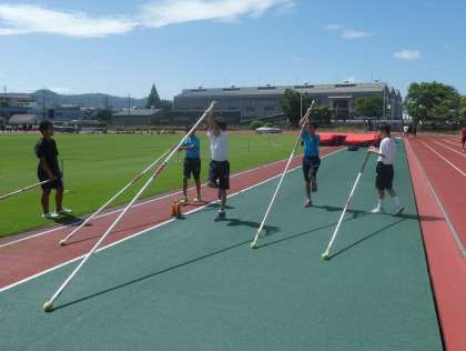 北河内7市から各校の陸上部が一同に集まり、競技場を貸し切って種目ごとに分かれて専門的な練習をしました。