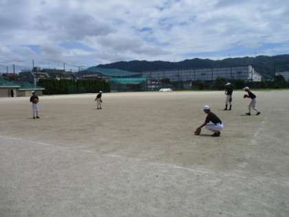 野球部は3年生が引退し、1,2年生で6名になりました。今日は1名欠席ですが基本の練習を怠ることなく練習に励んでいます。