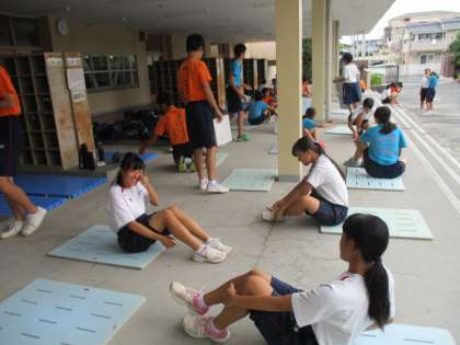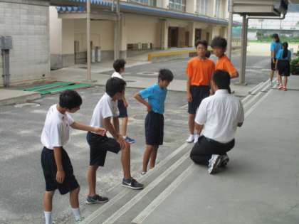 グランド状況がよくないため、下足室で練習開始です。