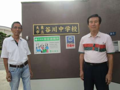 今日が始業式です。地域の野村さん、中川さんも朝、8時前から校門付近で生徒を待ってくれています。新しくした校門に設置されたネームプレートの前でお二人を撮りました。