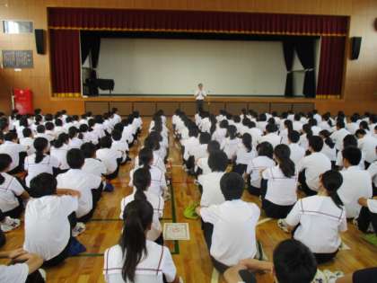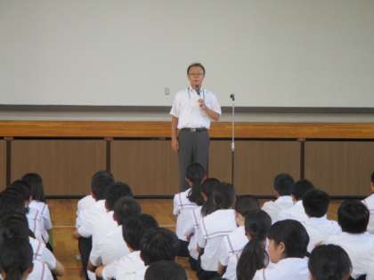 始業式前に表彰が15分程度ありましたが、私語をせず仲間を誉め称える姿に感動しました。私からは命の尊さ、部活動を引退した3年生、夏の想い出、仲間の頑張りを認める心の在り方等について話しをしました。また学校通信等でお知らせします。