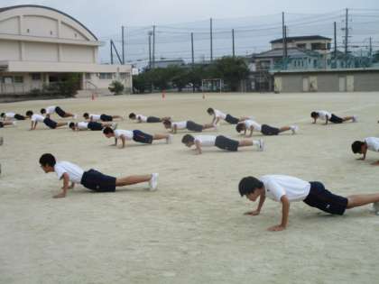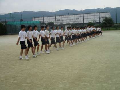3年生の学年練習です。男子は集団行動の練習、女子はダンスの練習です。男子は日頃の積み重ねがいかされています。