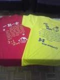 修学旅行を2日後に控えて、各クラスご自慢のTシャツが届きました。写真は1組、2組です。