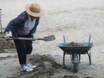 今日は天気が回復して暑い一日です。その中、校務員さんが溝掃除をしてくれています。