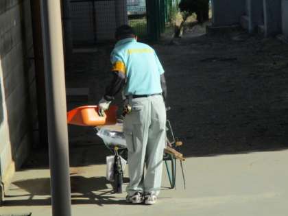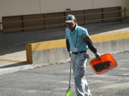 朝から学校整備員さんが丁寧に掃除をしていただいています。