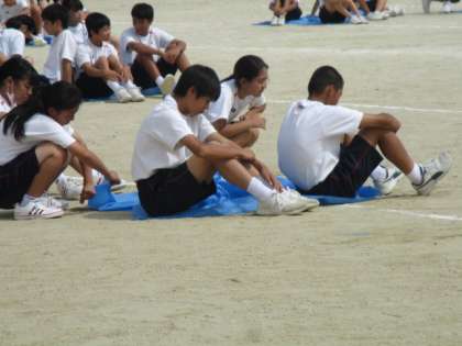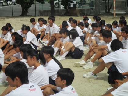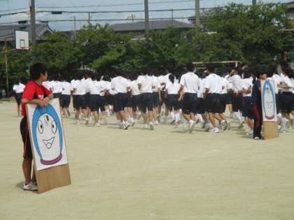 体育大会学年練習を行っています。私がグランドに出たときは終了間近でした。