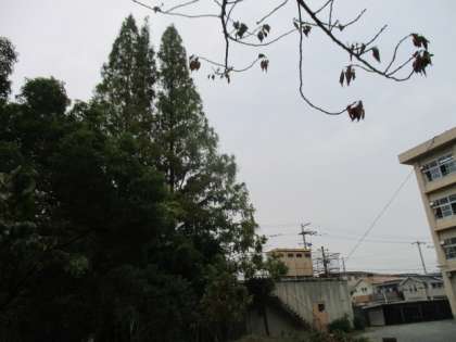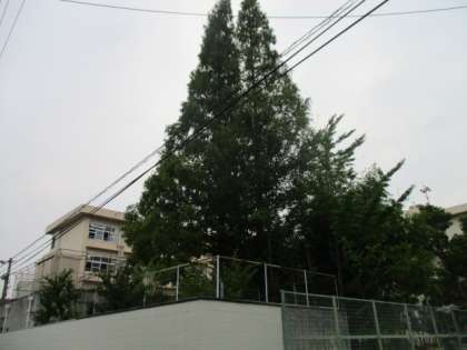 昨日のホームページにアップしましたが今日、中庭の樹木が伐採されます。長年、谷川中学校を見守ってきたくれた樹木です。朝、伐採される前に「清めのお酒」を樹木付近にまきました。