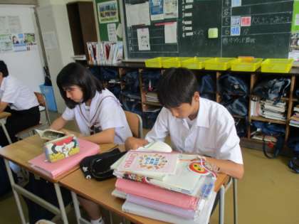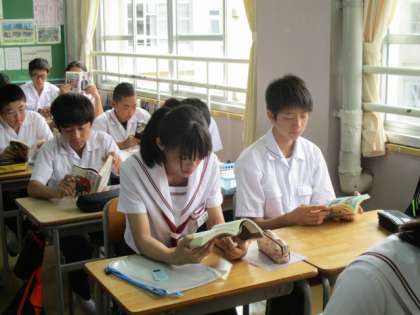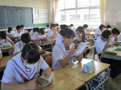 各学年の朝読風景です。3年、2年、1年の順番です。