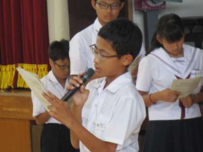 みんなの前で話すことは、緊張しますが一生懸命、報告をしていました。