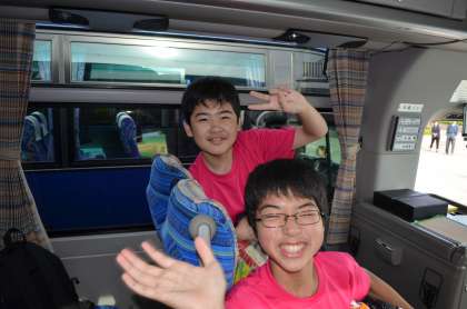 バスの中でも元気です。ケガのないようにいってきます。