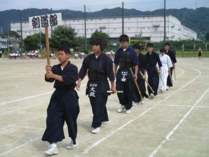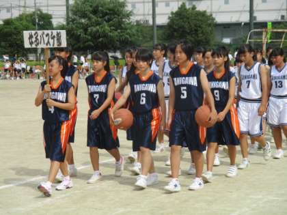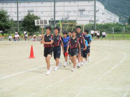 卓球部、剣道部、女子バスケットボール部の入場行進です。