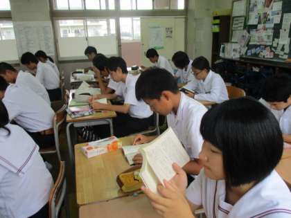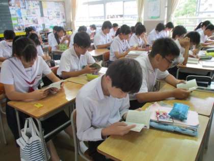 学年集会の日でしたが、グランド状況が悪いため朝読になりました。3年1,2組の朝読です。