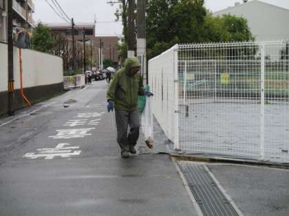 学校整備委員さんが学校付近のゴミも朝から拾っていただいています。
