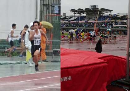 雨の中のレースでしたが、100mに出場した3選手は、1名が自己ベストを更新。2名もほぼ自己ベストの好タイムを出すことができました。