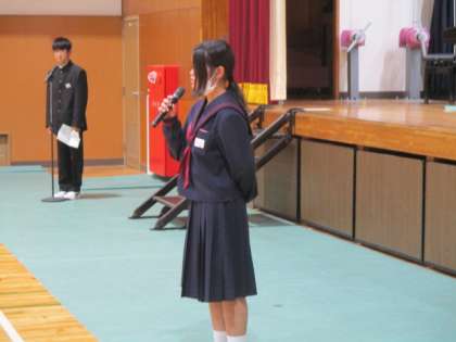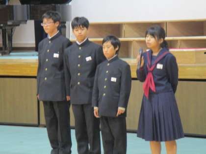 3,4限を使って1年合唱コンクールを行いました。約60名の保護者の方も来ていただき始まりました。開会のことば、諸注意、各クラスの意気込みなどを生徒自身が進行しました。