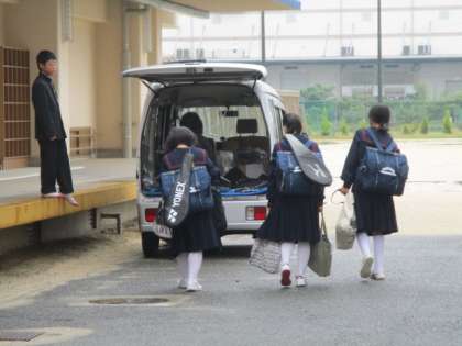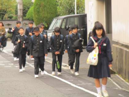 少し肌寒い朝です。今日はウィンドブレーカーの申し込み日です。今日も地域の中川さんが校門で生徒を迎えてくれます。