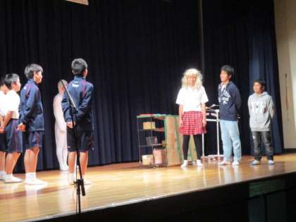 2学年の演劇です。内容は職場体験報告劇です。