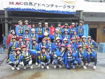 今日の川の状態はラフティングにとって最高だそうです。1組の記念写真です。
