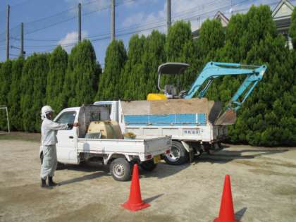 倒れたゴールドクエストが修復しました。午後から剪定をしていただきます。