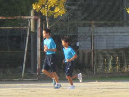 朝7時半から陸上部が朝練習に取り組んでいます。