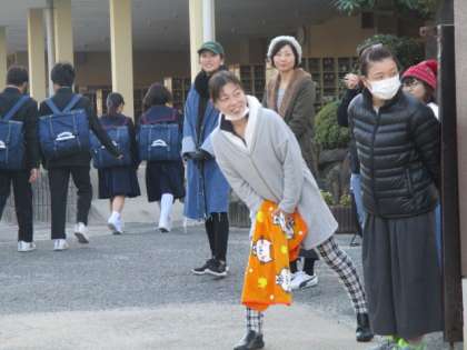 今週はPTAさんの挨拶運動です。朝からありがとうございます。教育実習生の先生も頑張って、門で子どもたちを迎入れています。