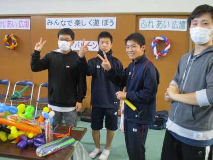 舞台進行は本校の生徒が行っています。風船で動物など作っています。