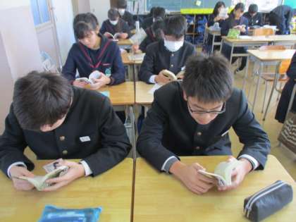 3年1,2組の読書風景です。
