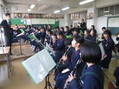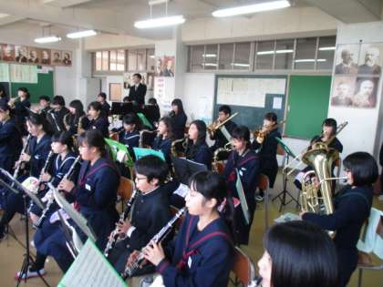 今日、15時50分から住道駅デッキで大東・四条・谷川中学校合同吹奏楽部が演奏します。朝から谷川中学校で最後の練習を行っています。ぜひ、15時50分に住道駅にお越し下さい!!。