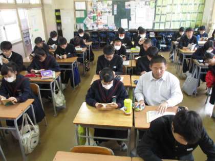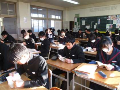 3年生の雰囲気がよりいい意味で変わってきました。3年1,2組の朝読風景です。