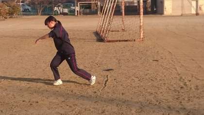 寒く冷たい朝ですが、朝練習に励んでいます。円盤投げの様子です。