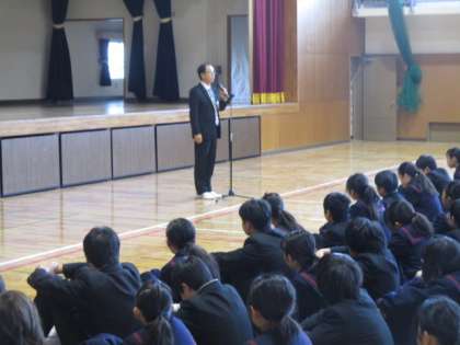 私からは今日を無事に迎えられたこと・体と心のけがについて・挫折、苦しい経験が人の痛みを想像できるということ・できるまで努力することの大切さなど話をして、3学期始業式の日に待っていますということを伝えました。