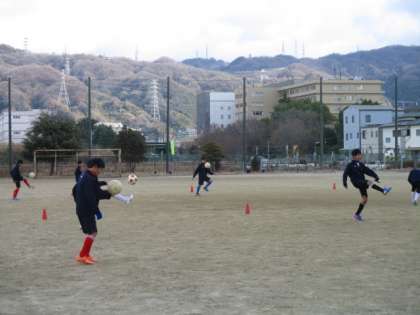 ランニングを終えて、ボールリフィティングから練習に入っています。