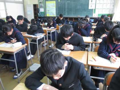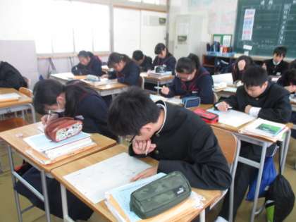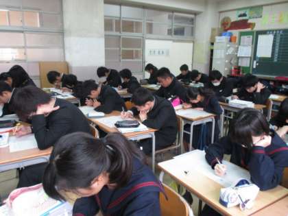 3年生は明日の実力テスト対策中の問題と向き合っていました。1,2年生は明日のチャレンジテスト対策です。